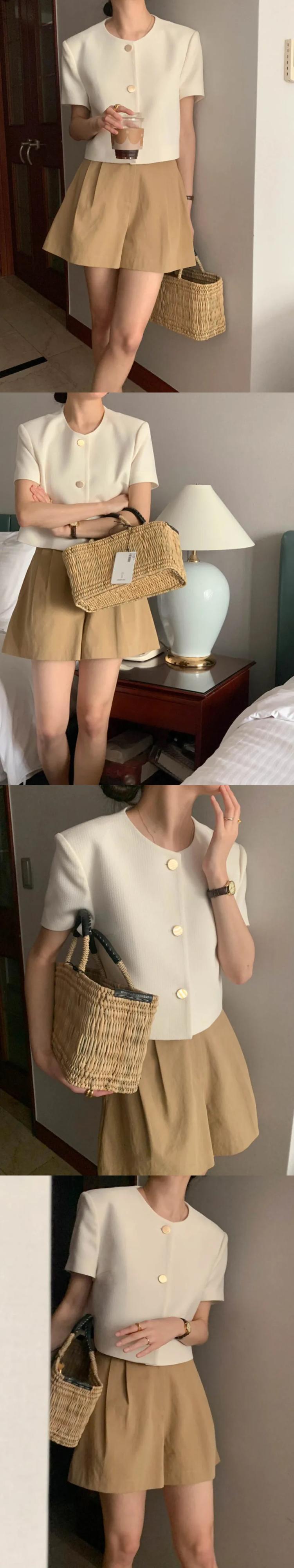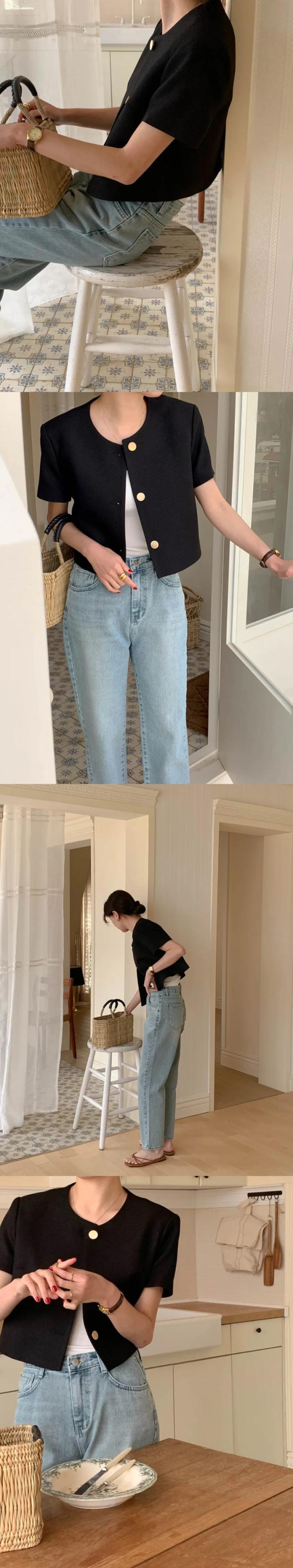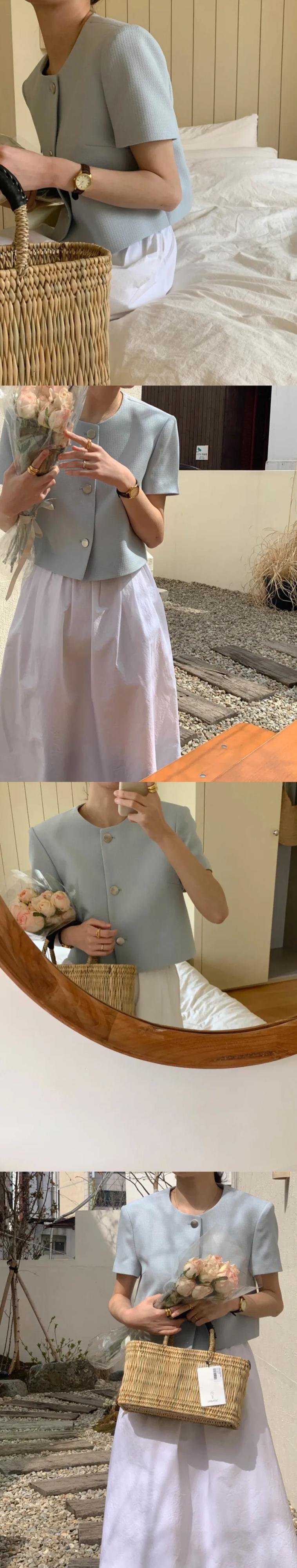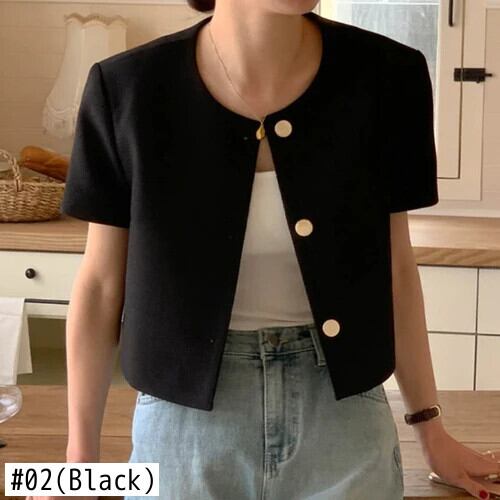 夏シックスタイル O ネック シングルブレスト ルーズ 万能 パフ スリーブ ショート ジャケット ロパ クロップ シャツ サマー 夏物 Oネック
