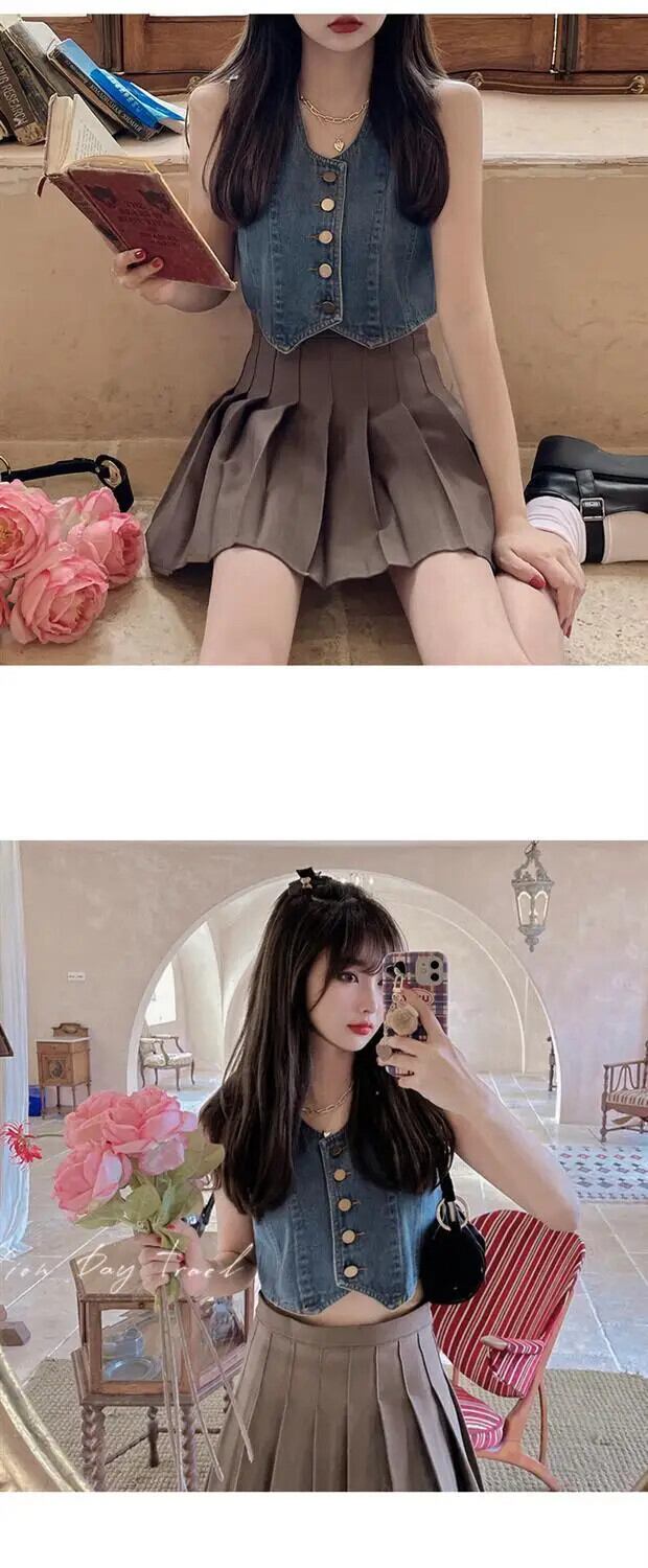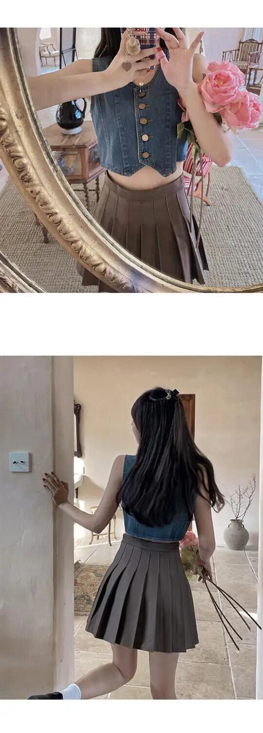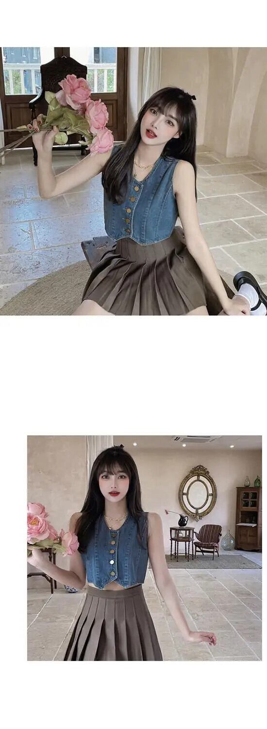 ボタンデニムチョッキ V ネックノースリーブアウターシックトップスベスト Chalecos Vネック