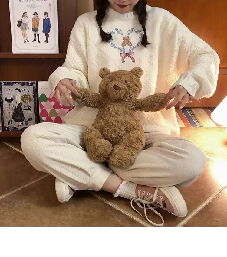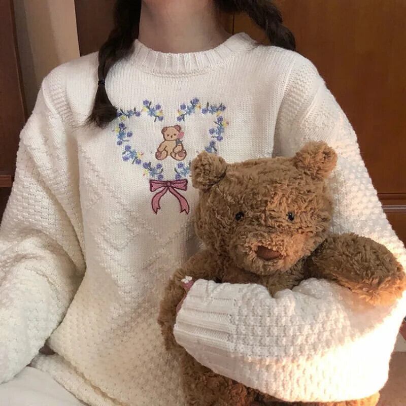かわいいセータートレンディ甘いクマハート刺繍プルオーバーインニットニットルーズトップジャンパー 大人ガーリー スウィート キュート カジュアル