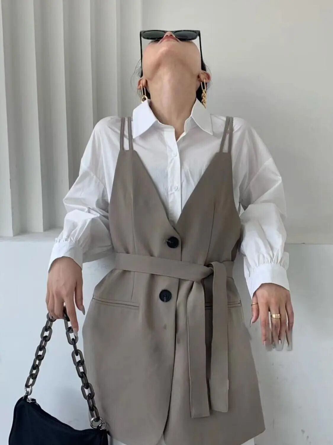 ベスト調節可能ウエストシンプルボタン人気ポケットオールマッチスタイル春オフィスレディインスーツ Chaleco スプリング 春物 アジャスタブル 会社 学校 通勤や通学にも