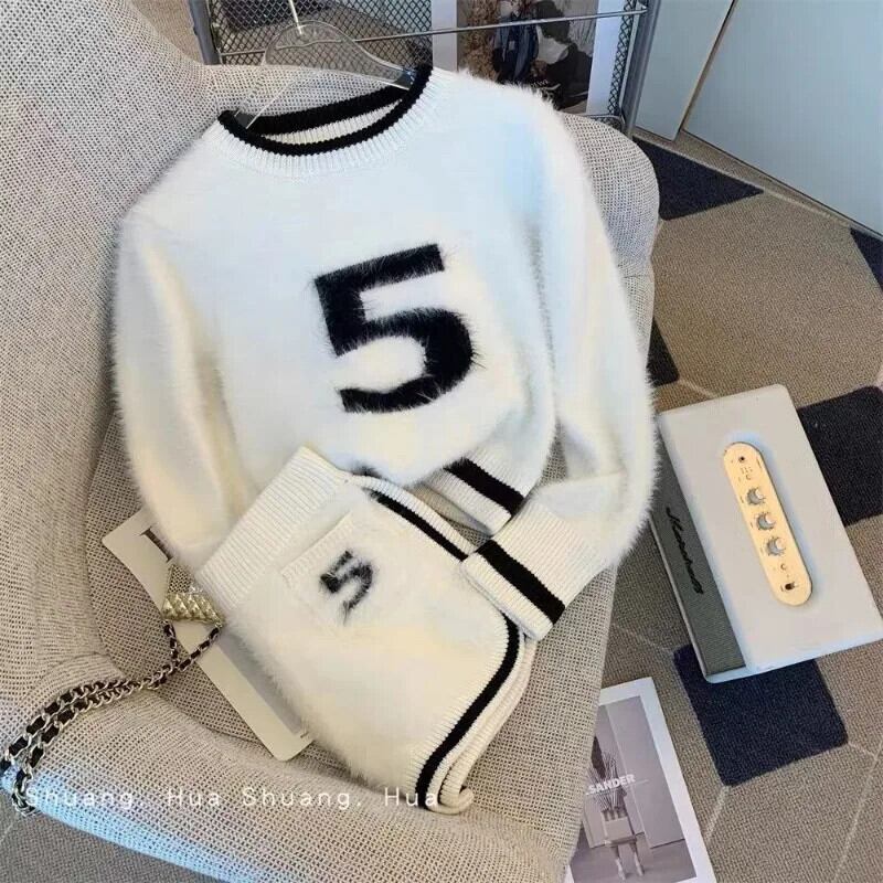 クロップドプルオーバーレターセータートップスレディース 2 ピースセット Y2k ワイドレッグショートパンツニットパーティー衣装 ワイドパンツ