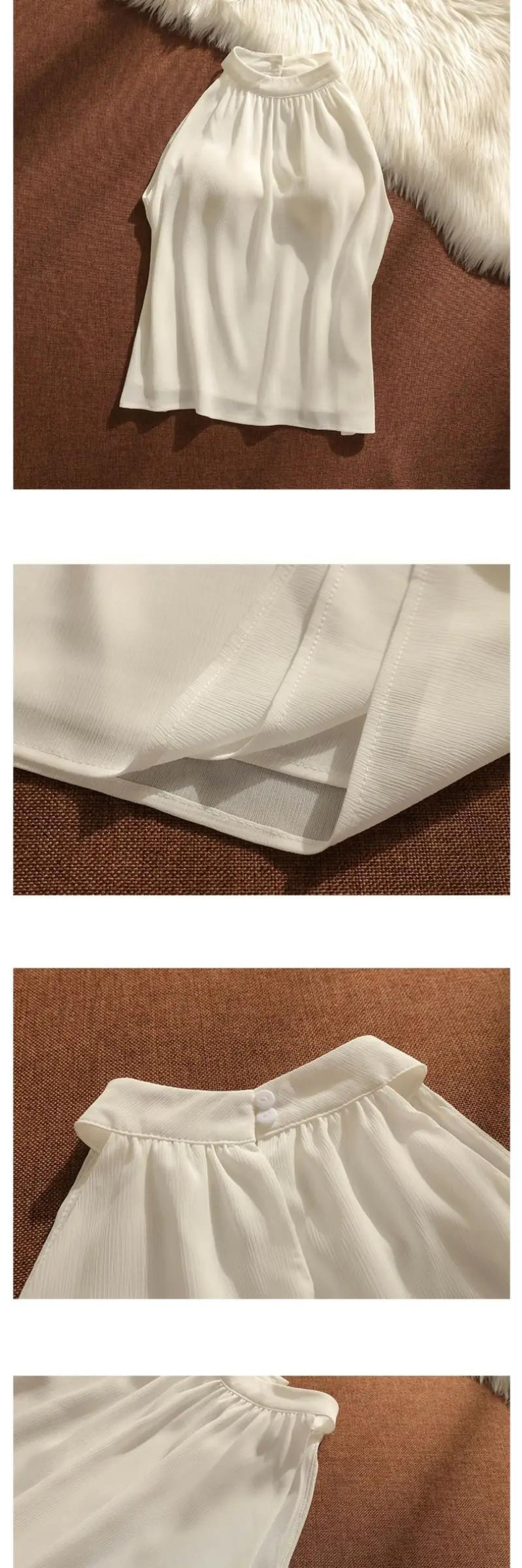 タンク気質トップス夏シフォンブラウス O ネックノースリーブ白シャツデキャミソール ホワイト サマー 夏物 Oネック