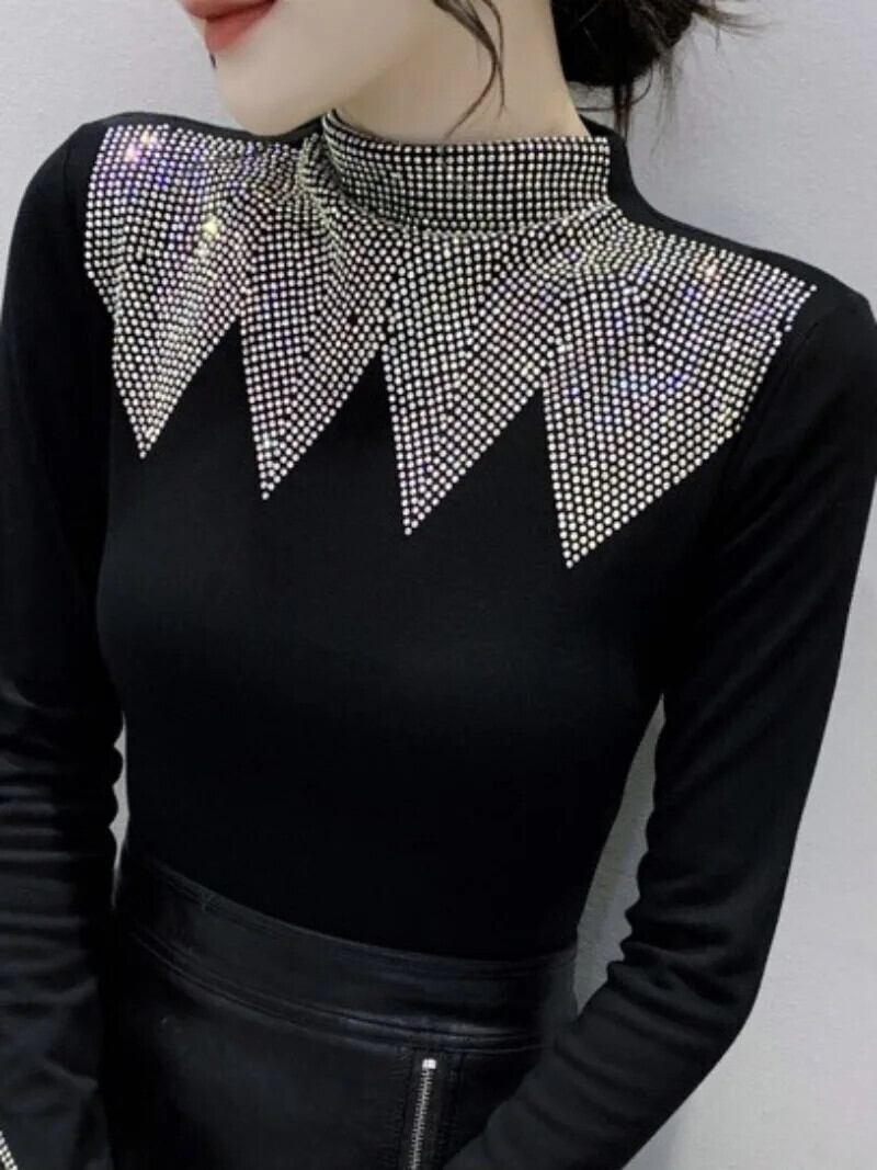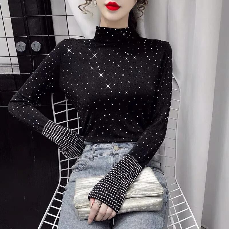 グランジ美的グラフィック Tシャツ Y2k トップ Ropa スリムホットダイヤモンドブラック Tシャツステッチボトム Tシャツ
