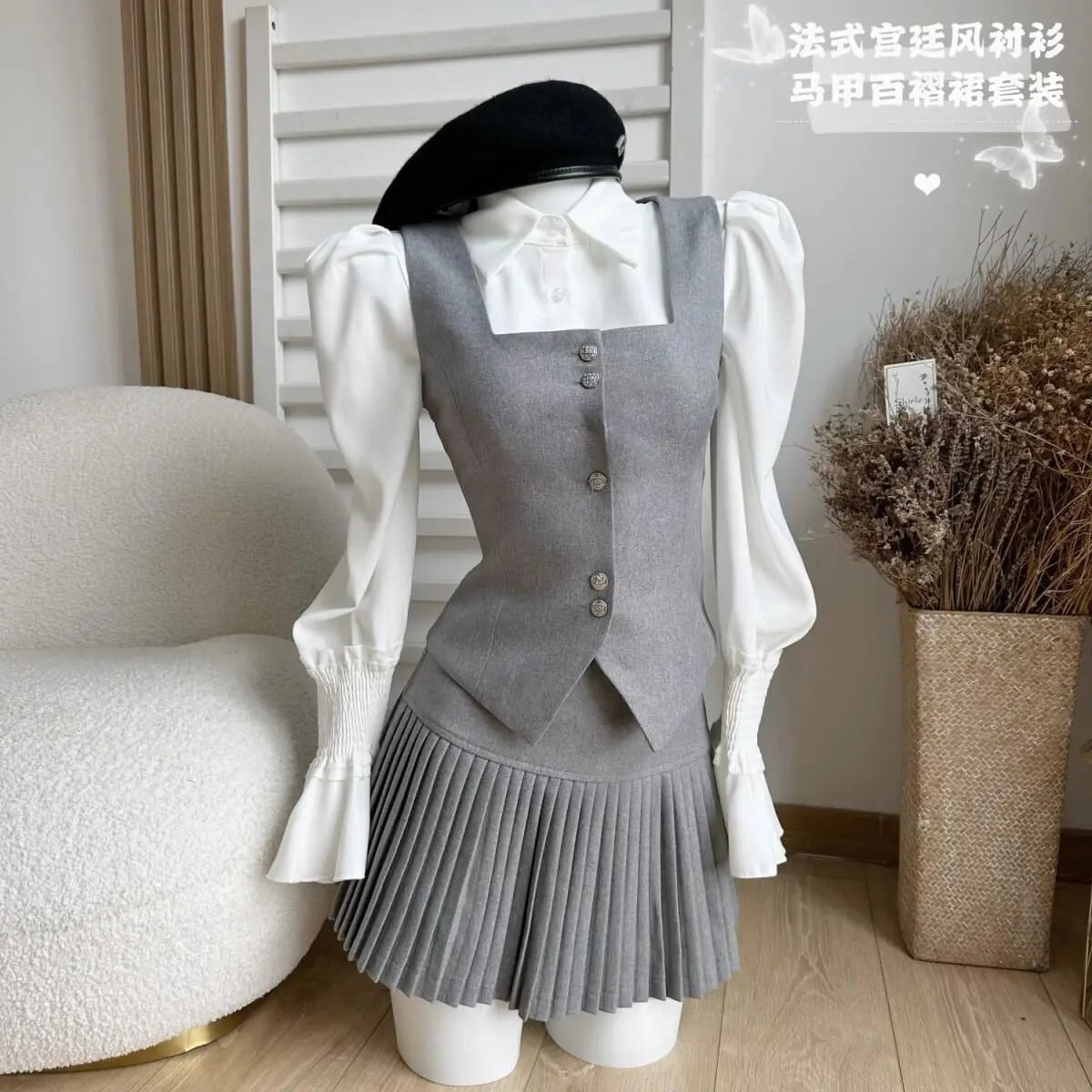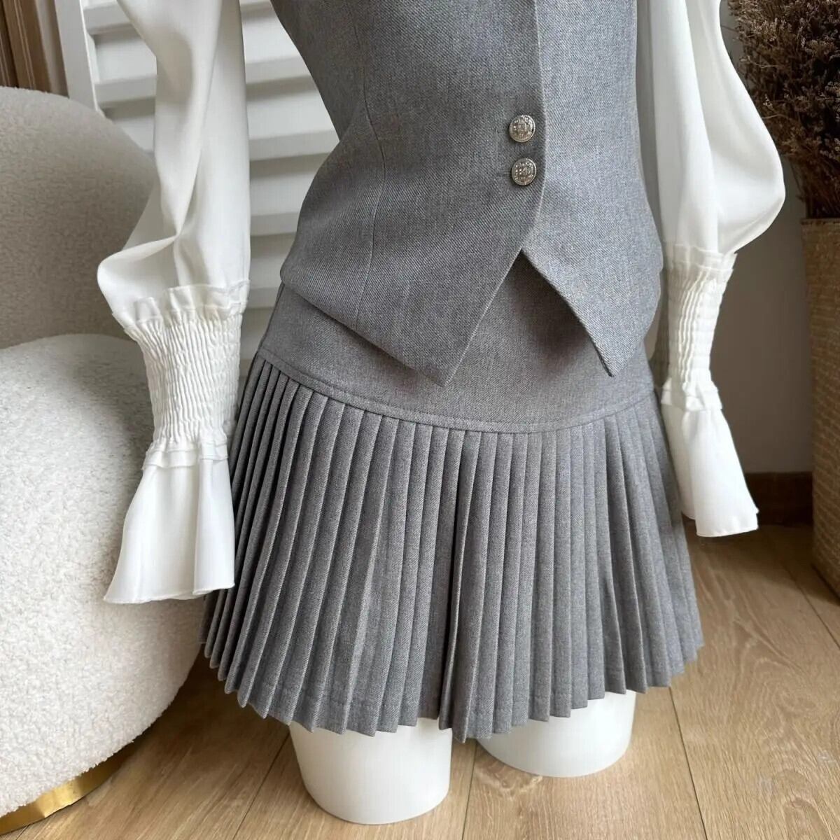 mal Kpop 衣装 3 点セット ラペルカラー ブラウス シャツ ラップ ヒップ ウエスト スカート コケット ホワイト シック ベスト ese