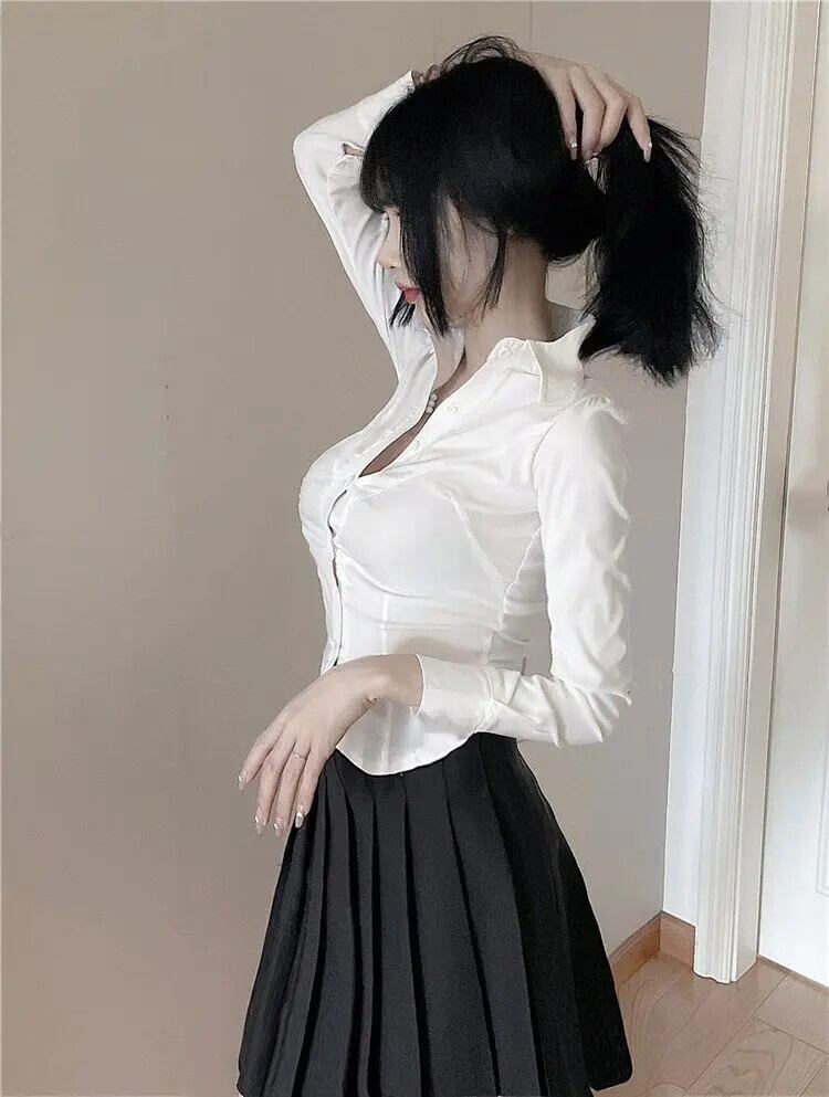 オフィスレディワークブラウス白シャツトップ 2024 春フレンチセンススモールフィットショート長袖シャツ ロング ホワイト スプリング 春物 会社 学校 通勤や通学にも