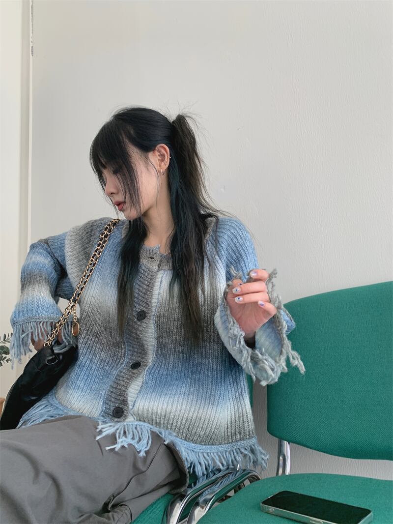 電話セーターカーディガン原宿 O ネックルーズショートコート 2024 秋タイダイ甘いニットジャケット 大人ガーリー スウィート キュート カジュアル かわいい オータム 秋物 Oネック