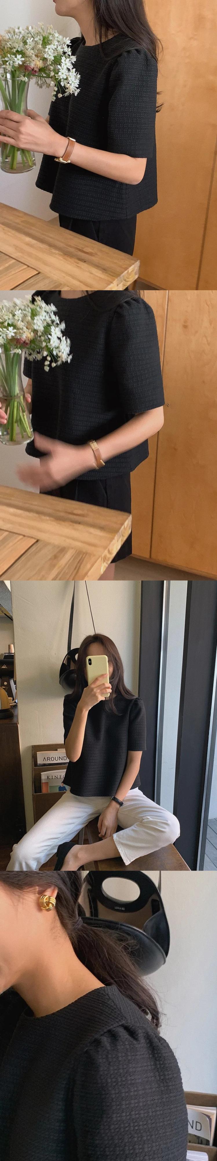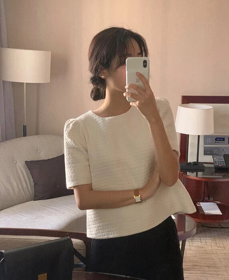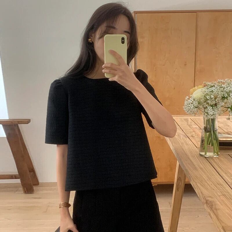 ドール O ネックパフスリーブブラウス夏 2024 ルーズシャツスタイルシック Tシャツ サマー 夏物 Oネック