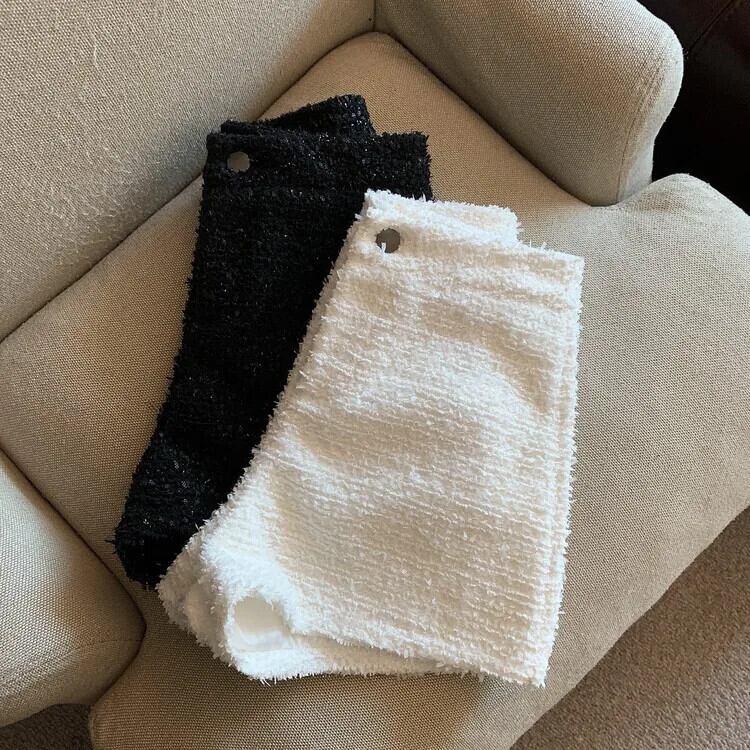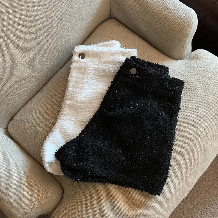 ジッパーワイドレッグブラックツイードショーツ秋冬オールマッチウエストパンツ オータム 秋物 ウィンター 冬物 ブルマー ワイドパンツ ソリッドカラー