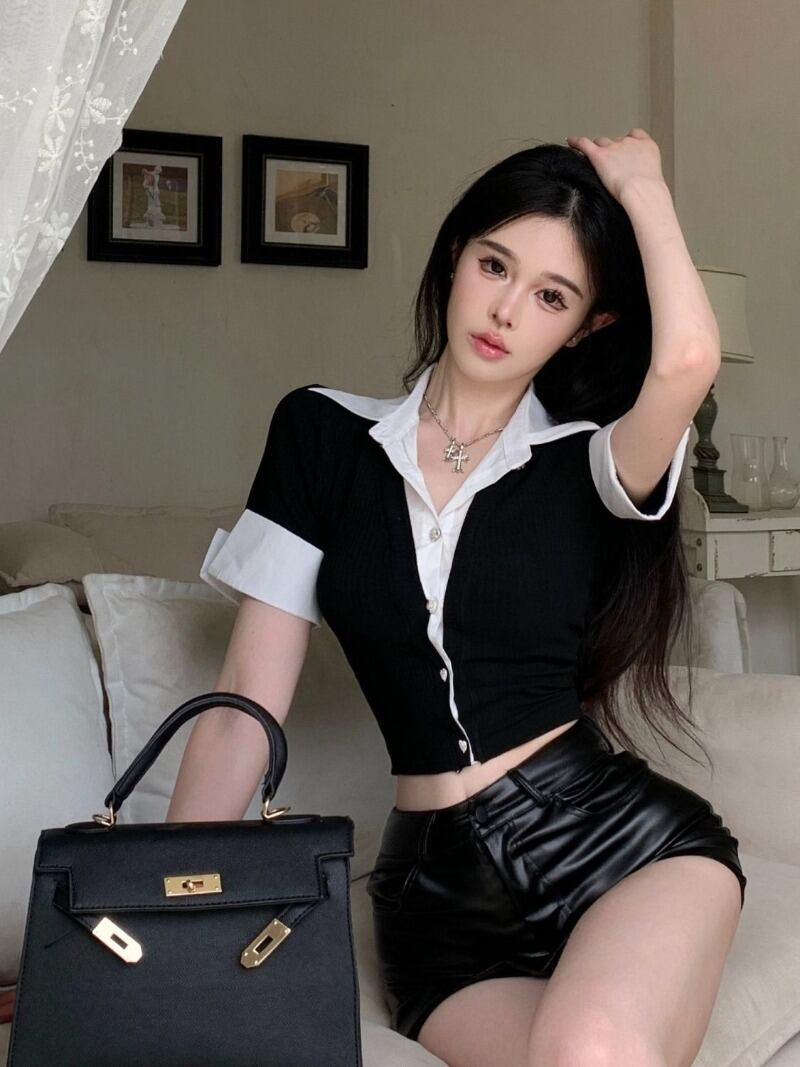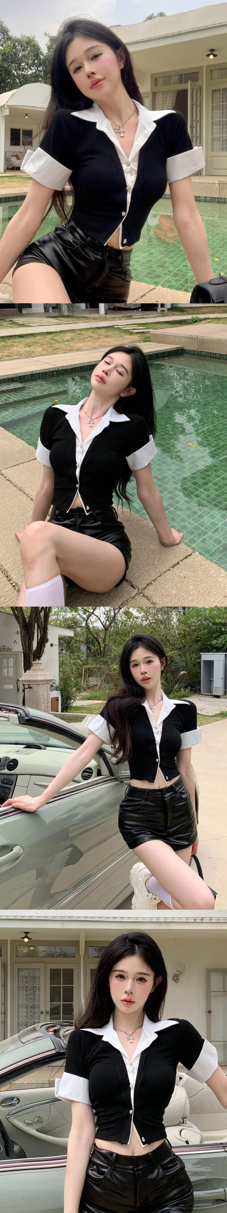 シャツスリムデイリーフェイクツーピース学生半袖シンプル夏セクシースタイルオールマッチ ショート ハーフスリーブ サマー 夏物