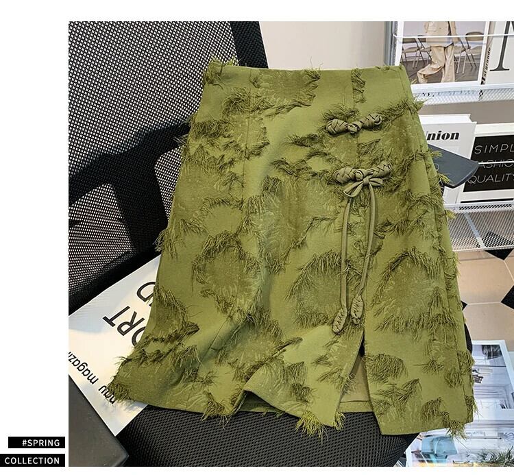 スプリット立体ジャカード フリンジ A ライン ショート スカート クラブ原宿ファルダモーダ 2024 黒ペチコート Y2k シック ブラック かわいい Aライン