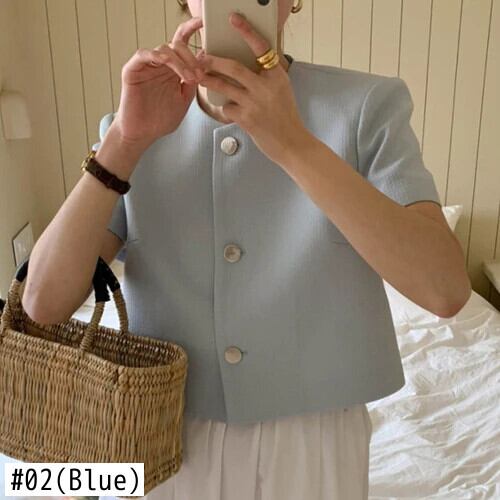 気質小さ香りスタイルラウンドネックルーズバブルスリーブショートコートサマージャケット春スーツクロップトップ スプリング 春物 夏物 Oネック