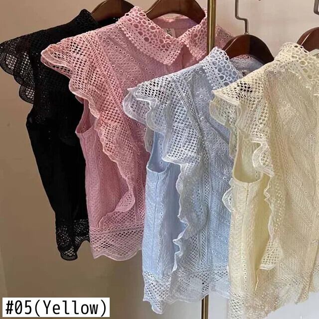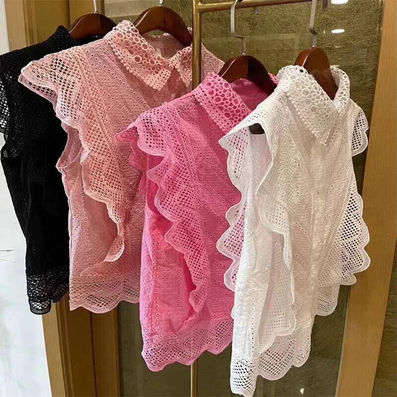 ホワイト水溶性レースパッチワーク刺繍ノースリーブシャツシングルブレストルーズコットンブラウス