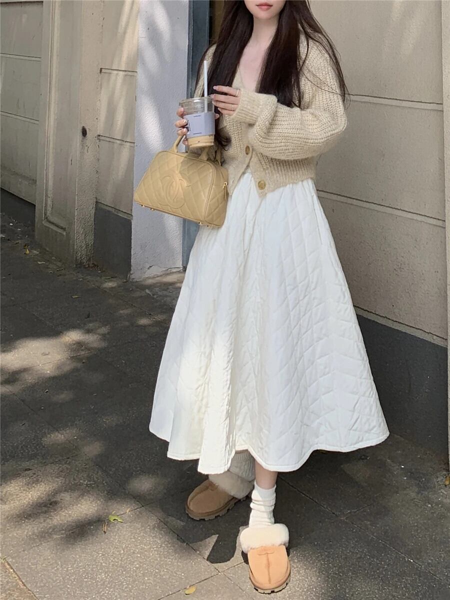 Faldas Largas Csaual ホワイトダイヤモンドコットンチェック柄スカート原宿スタイルロング Y2k グランジロパ厚い秋冬 かわいい オータム 秋物 ウィンター 冬物