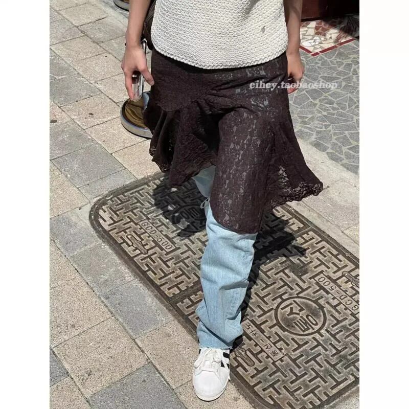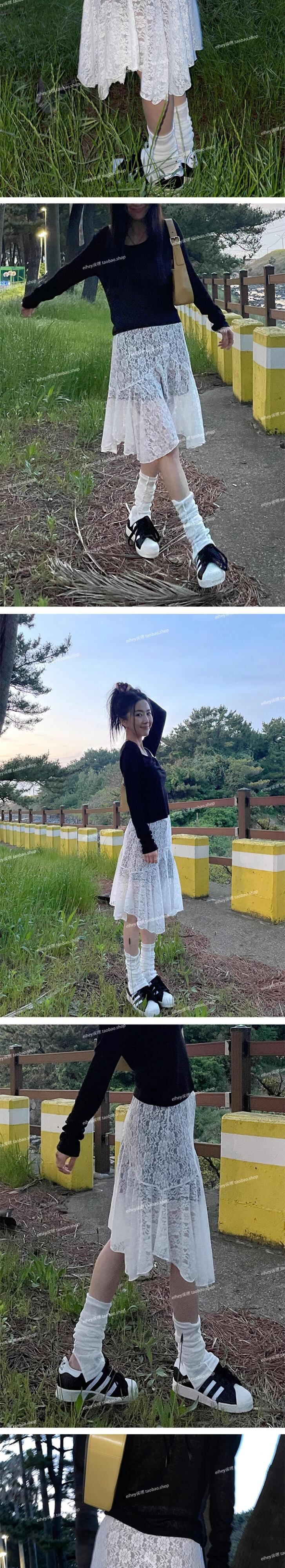 プリーツわずか透明白いレーススカート不規則裾お尻ラップ甘いファルダスモーダ 2024 ホワイト 大人ガーリー スウィート キュート カジュアル