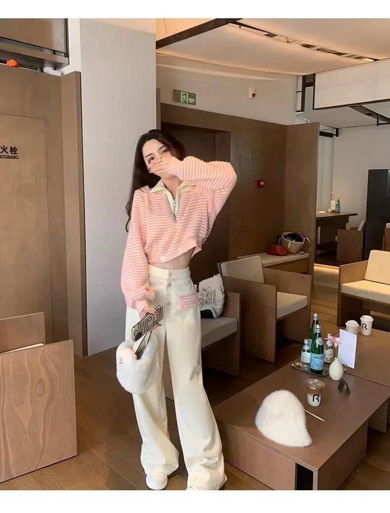 トラックスーツツーピースセット 2024 ルーズワイド脚パンツセットクロッププルオーバーパーカートップスピンクスウェット Ropa クラブ衣装 シャツ ワイドレッグ ワイドパンツ
