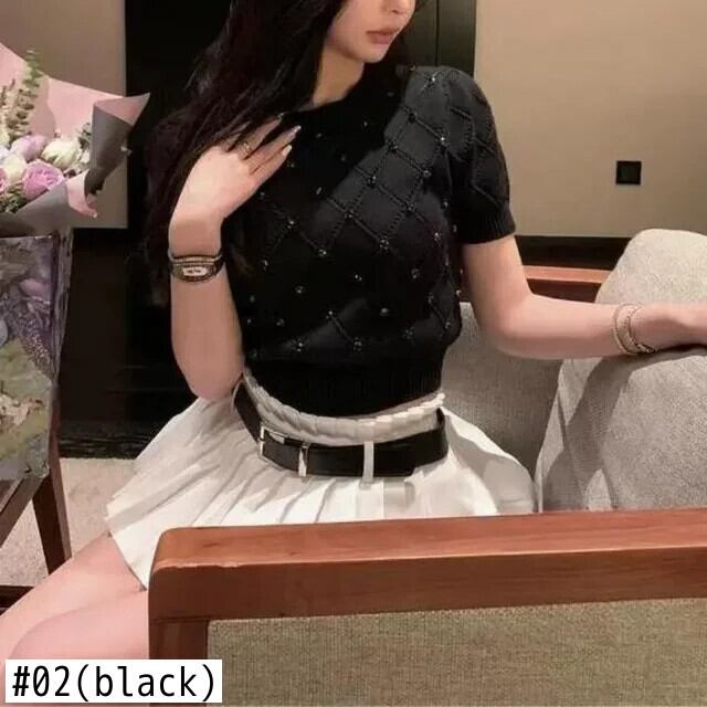 ニット Tシャツ半袖シャツトップススリムニット Tシャツセーター作物春夏 ショート ハーフスリーブ スプリング 春物 サマー 夏物