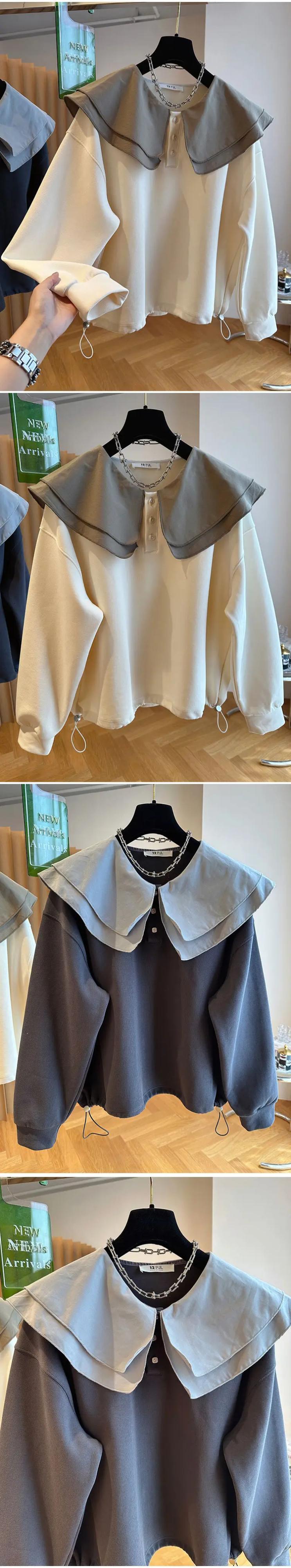 巾着フリル二層ドールネックパーカー Sudaderas パラ Y2k コントラストカラースウェットトップス シャツ
