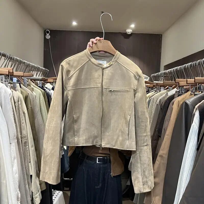 シックソリッドジッパーグランジジャケットストリートトレンディPUレザートップすべて一致 ソリッドカラー