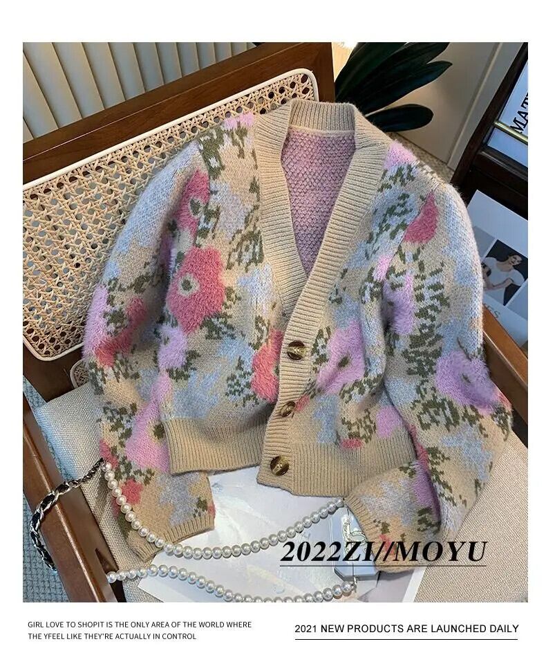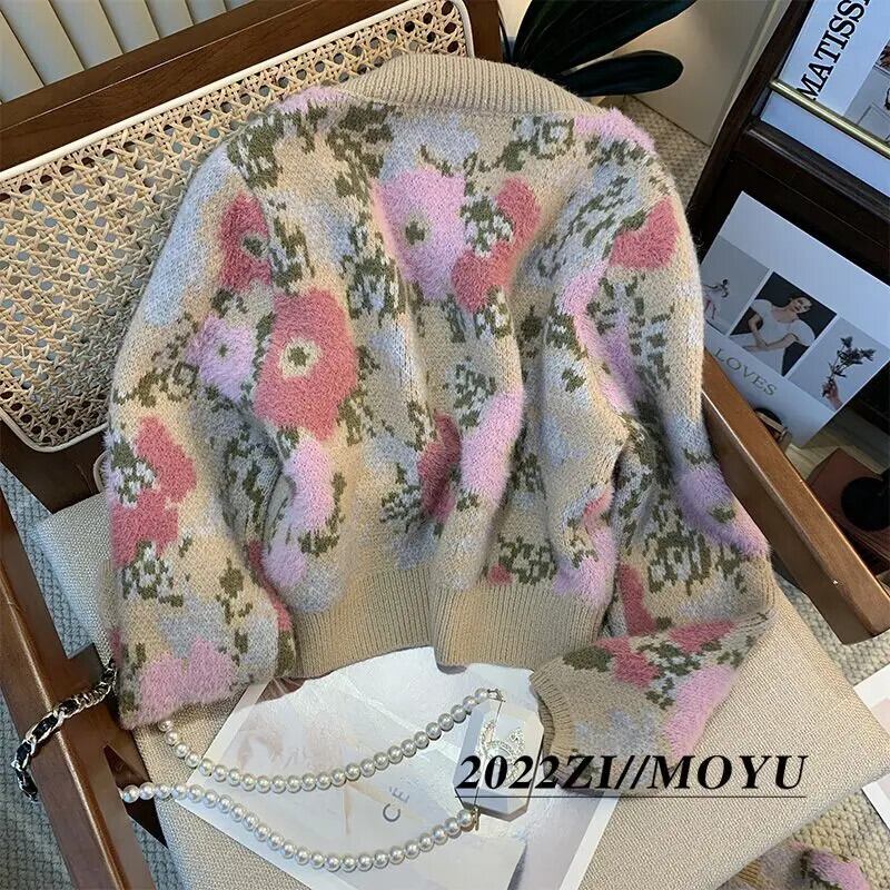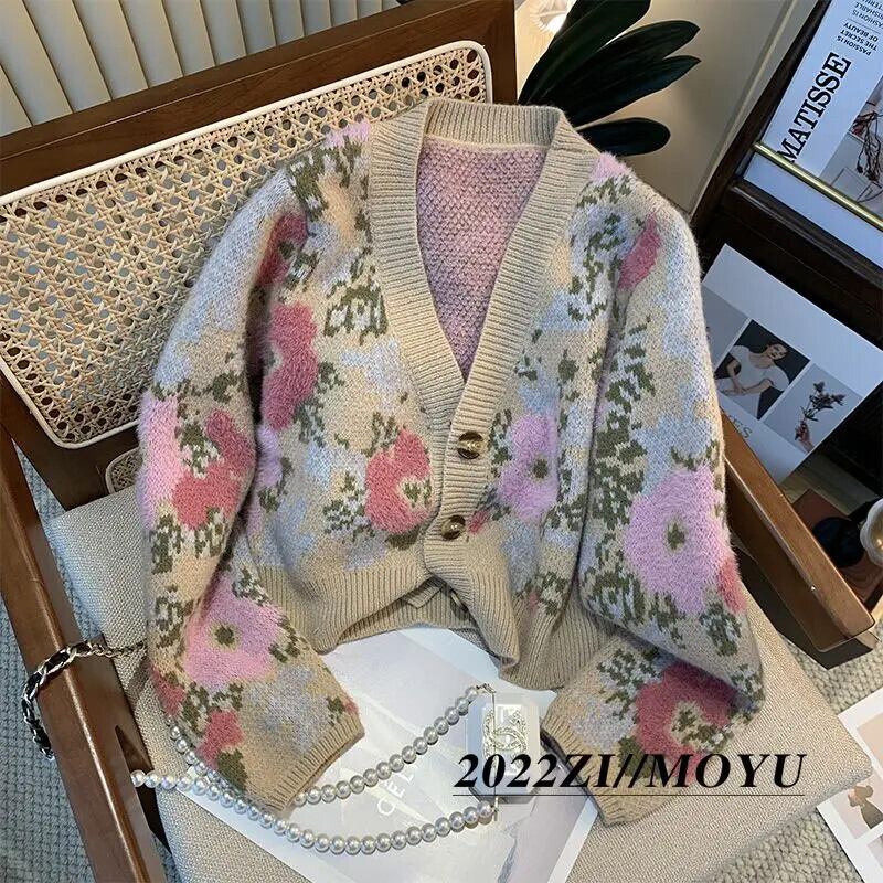 ニットドレススリング 2024 秋冬 2 点セットレディース衣装ジャカードカーディガン花セータージャケット V ネックトップス オータム 秋物 ウィンター 冬物 花柄 Vネック