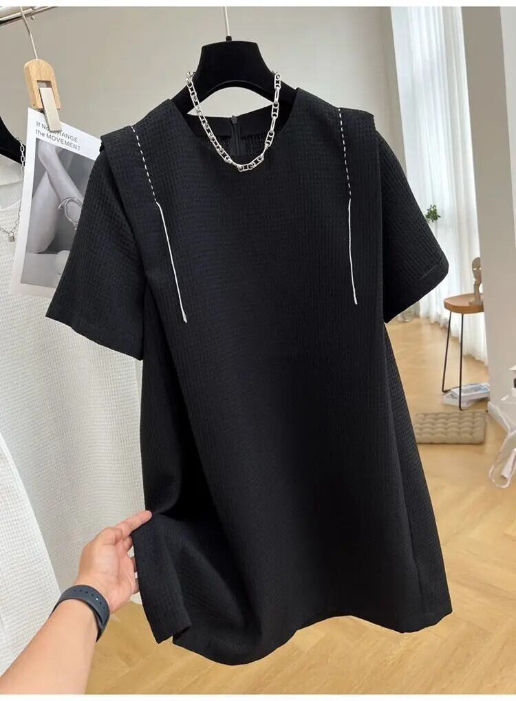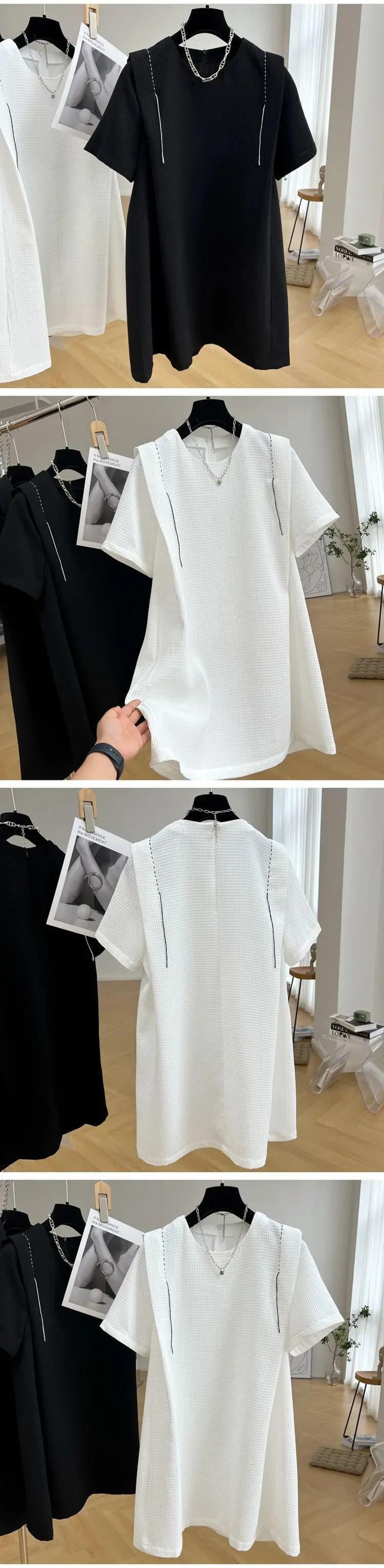 マキシブラックホワイト半袖サマードレス 2024 Y2k Vestidos デ Tシャツローブ ショート ハーフスリーブ 夏物
