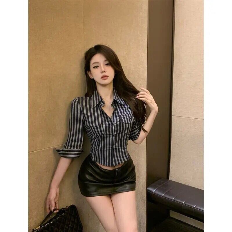 ウエスト気質トップストライプシャツDe Moda 2024スリムブラウス夏作物 サマー 夏物