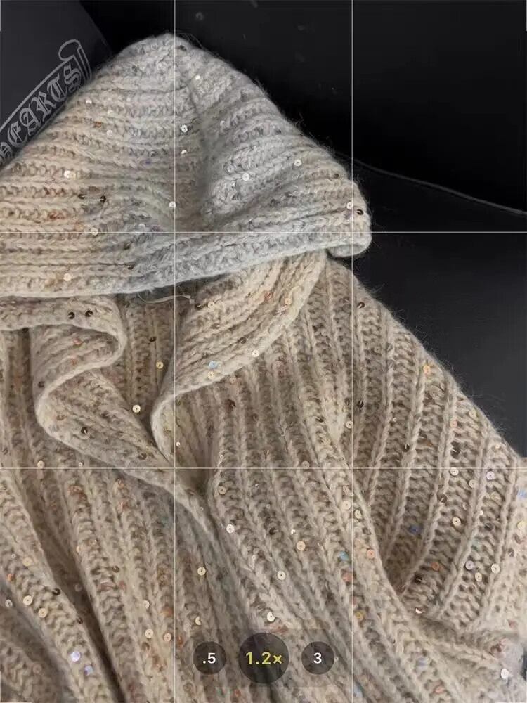フレンチスパンコールカーディガングラデーションフード付きセーターセーターデY2k2024秋ニットジャケット オータム 秋物
