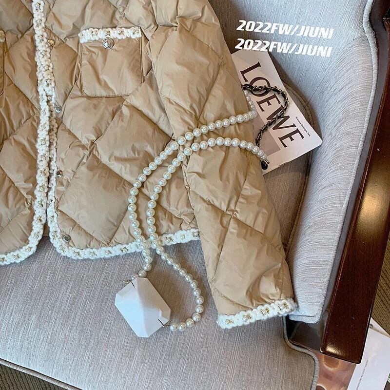 スタイルダウン綿パッド入りジャケット秋冬軽量暖かいパーカーパールホワイトパーカーコート コットン オータム 秋物 ウィンター 冬物 真珠