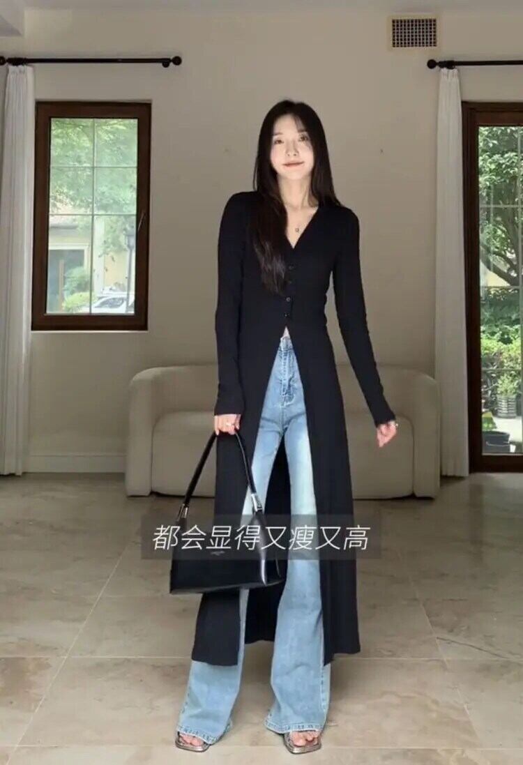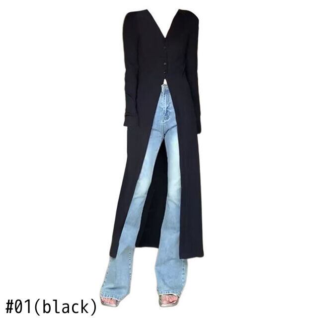 V ネックセーター黒ロングカーディガン Y2k Hotsweet 秋スタイルニットドレスシック ブラック 大人ガーリー スウィート キュート カジュアル オータム 秋物 Vネック