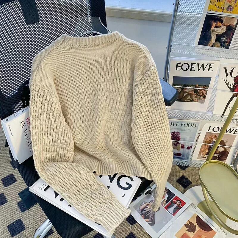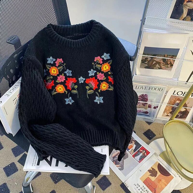 原宿ニットカシミヤトップクリカル刺繍花プルオーバースリーブ秋冬セーター特大トップスY2K かわいい オータム 秋物 ウィンター 冬物 花柄