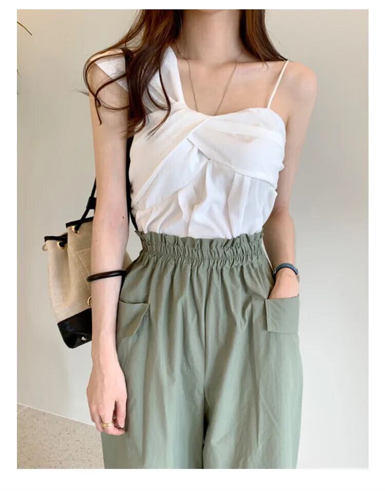 タンク & キャミソールトップス Tシャツ夏クロップトップスリング非対称オフショルダー気質グランジ Ropa サマー 夏物