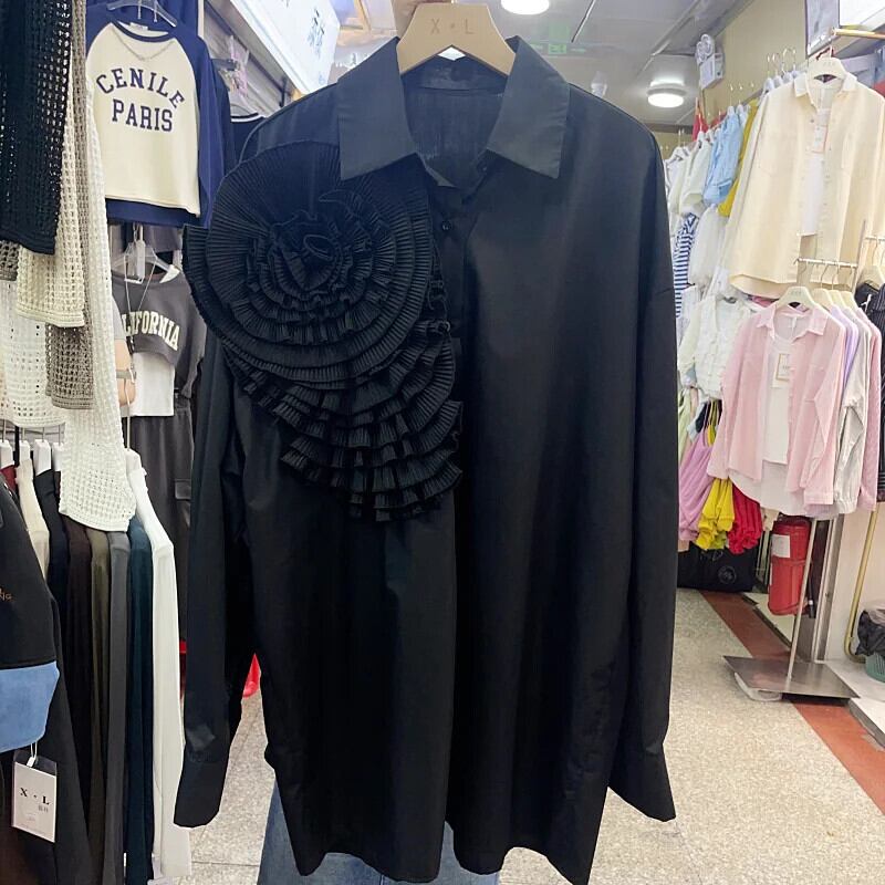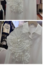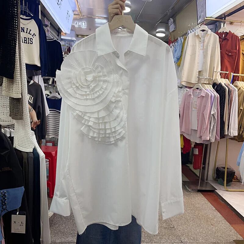 2024 春秋シャツ & ブラウス 3D 花トップス甘いパーティー 大人ガーリー スウィート キュート カジュアル スプリング 春物 オータム 秋物 ソリッドカラー フラワーデザイン