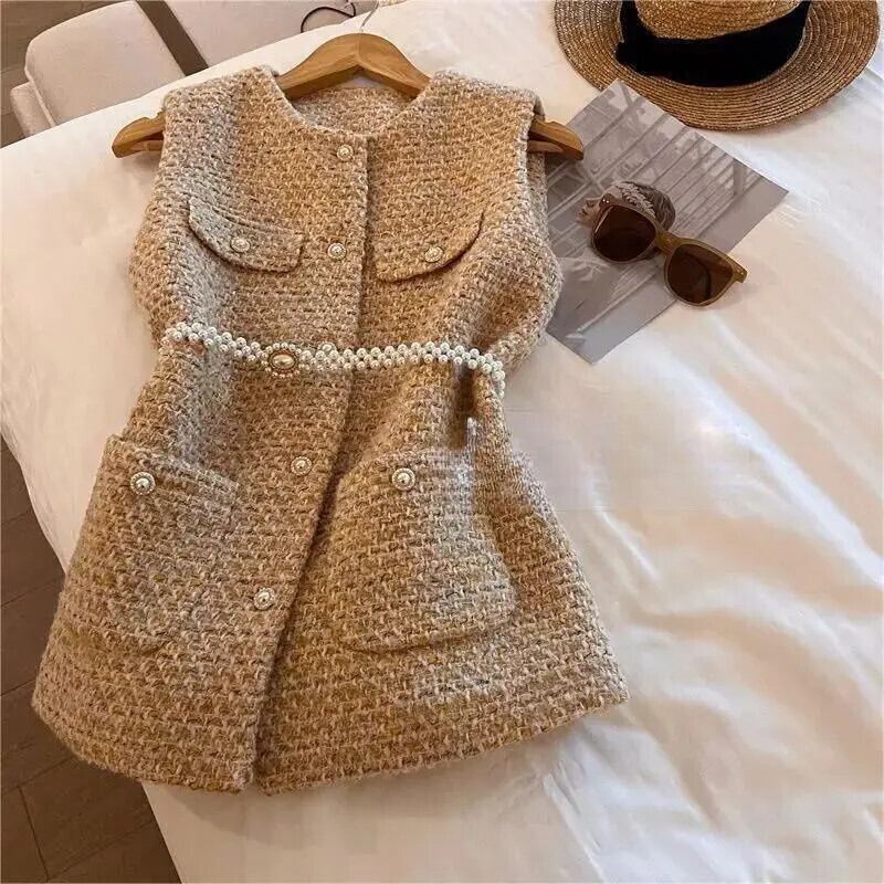 小さ香り風ベルトベスト Chaleco チョッキ丈ジャケット 2024 シック Roupas トップコート ハーネス