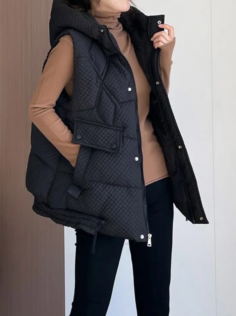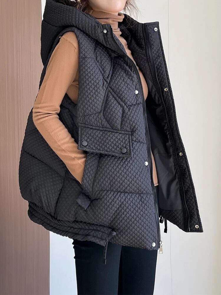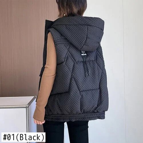 冬フード付き綿ベスト暖かいコートノースリーブジャケットルーズジッパーオーバーコートベストダウンパーカー コットン ウィンター 冬物
