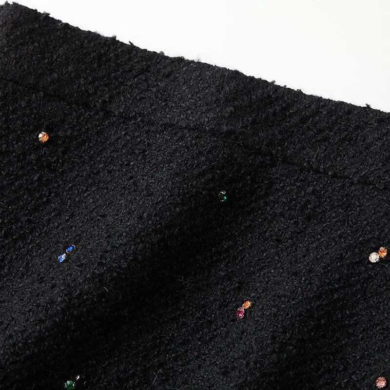 オールマッチングシンプル 2024 冬ソリッドカラーウールラインストーンウエスト小さ A ラインスカート黒 Y2k ファルダス ブラック ウィンター 冬物