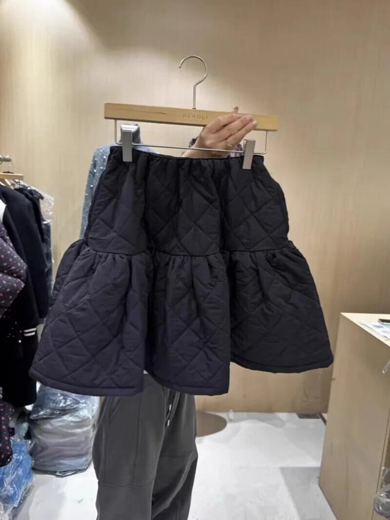 ウエストダイヤモンドコットンふわふわレディースフリルエッジショートスカート Y2k シンプルブラック Hotsweet ファルダス 2024 シック 大人ガーリー スウィート キュート カジュアル