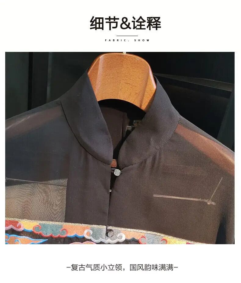 2024 黒ブラウスシースルーセクシーシャツ重い刺繍花薄いブラウス気質トップス ブラック 花柄