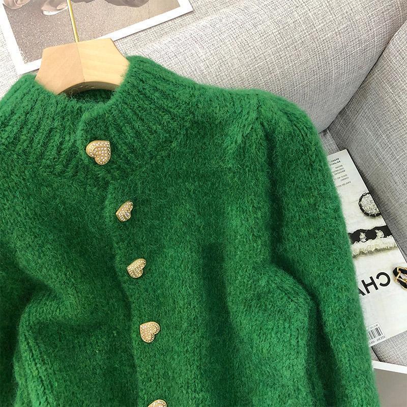 2024 グリーン ニット カーディガン セーター秋半襟甘い冬ジャケット 大人ガーリー スウィート キュート カジュアル オータム 秋物 ウィンター 冬物