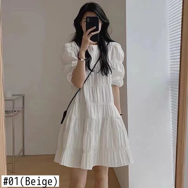 小さしわバブルスリーブフレンチドレス 2024 夏 Vestidos デ緩い黒、白人形サンドレスショート ホワイト ブラック サマー 夏物