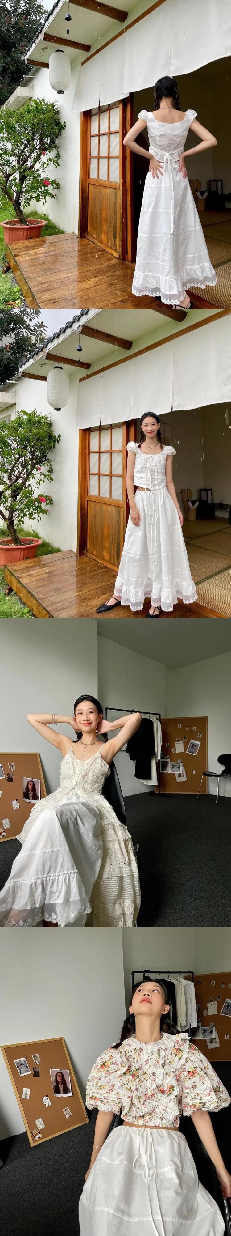 フレンチスイートレースパッチワーク巾着Aラインロングホワイトスカートファルダスタイルメッシュペチコート2024シック 大人ガーリー スウィート キュート カジュアル