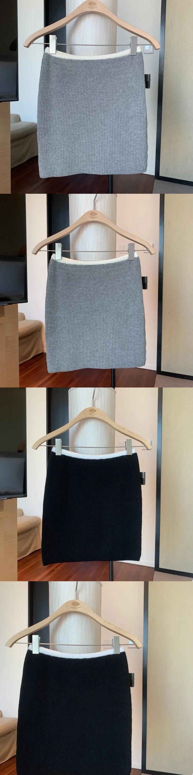 ブラックグレーニットスカート 2024 ミニ尻ラップ秋スリムウエスト Y2k コントラストカラーストライプスカート オータム 秋物
