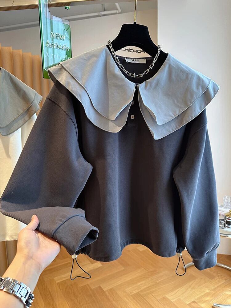 裾巾着ルーズフリル二層ドールネックパーカーコットンホットスイートストリートスダデラスウェット シャツ 大人ガーリー スウィート キュート カジュアル