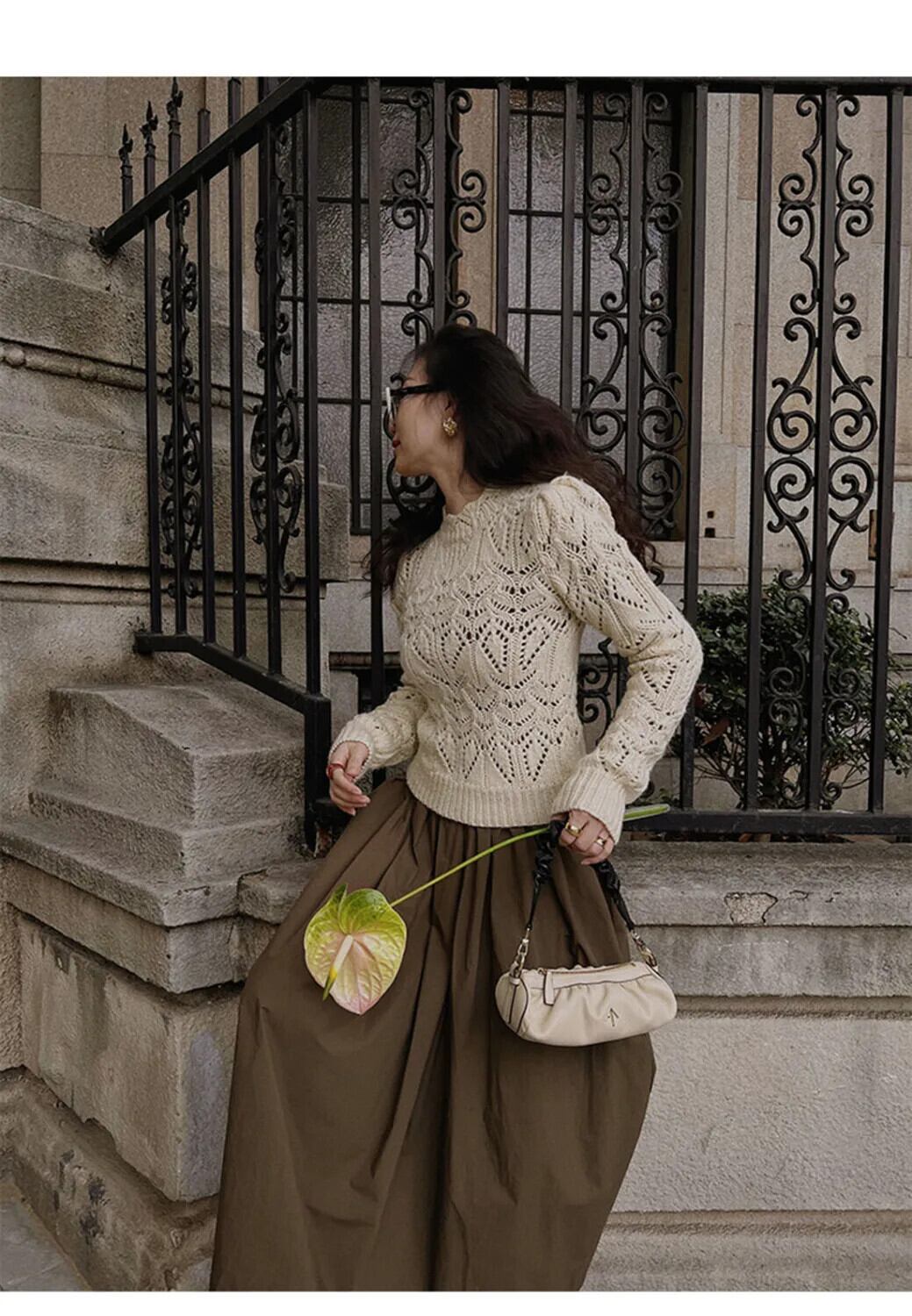 2024 プルオーバー長袖ニットセーターセンスショー薄い気質レトロボトムス ロング