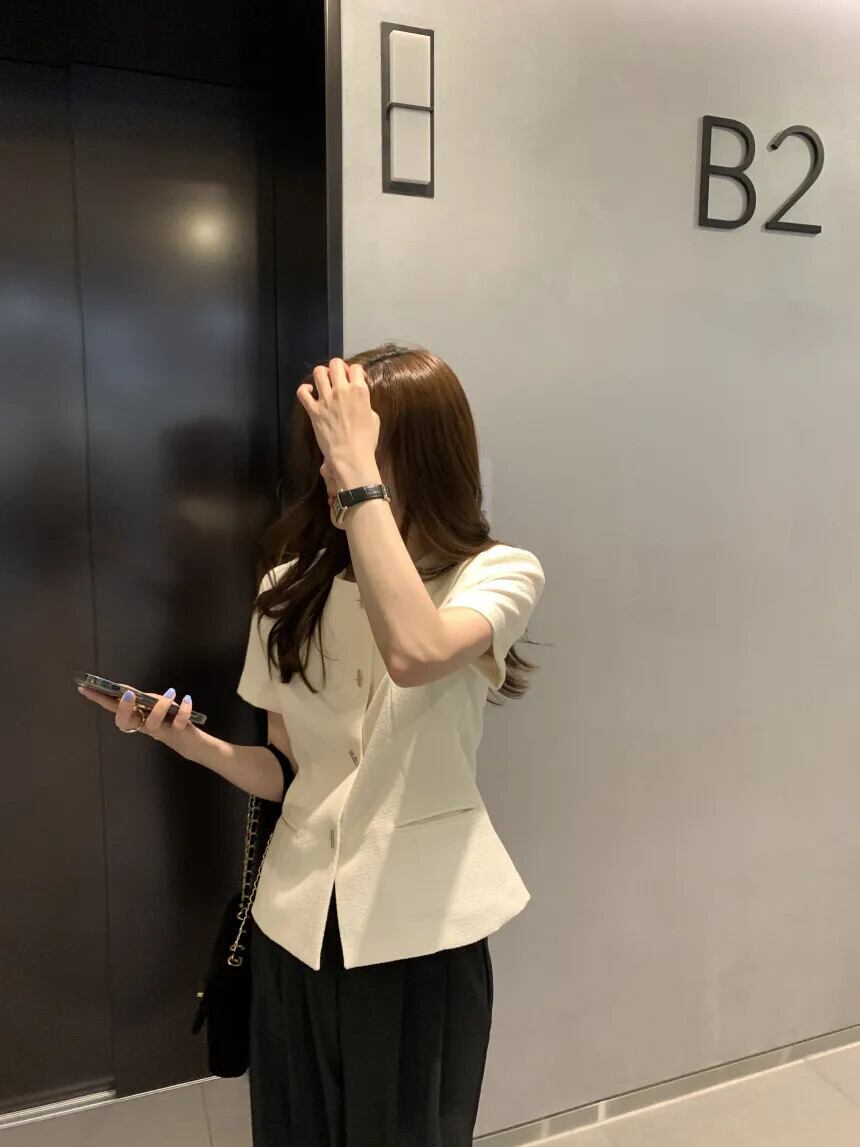 フランス小さ香りスタイル黒ツイードショートジャケットサマーコート Chaquetas パラブレザースーツトップス 2024 ルース ブラック 夏物