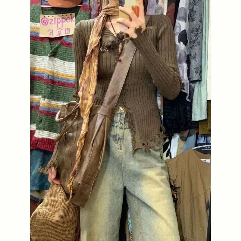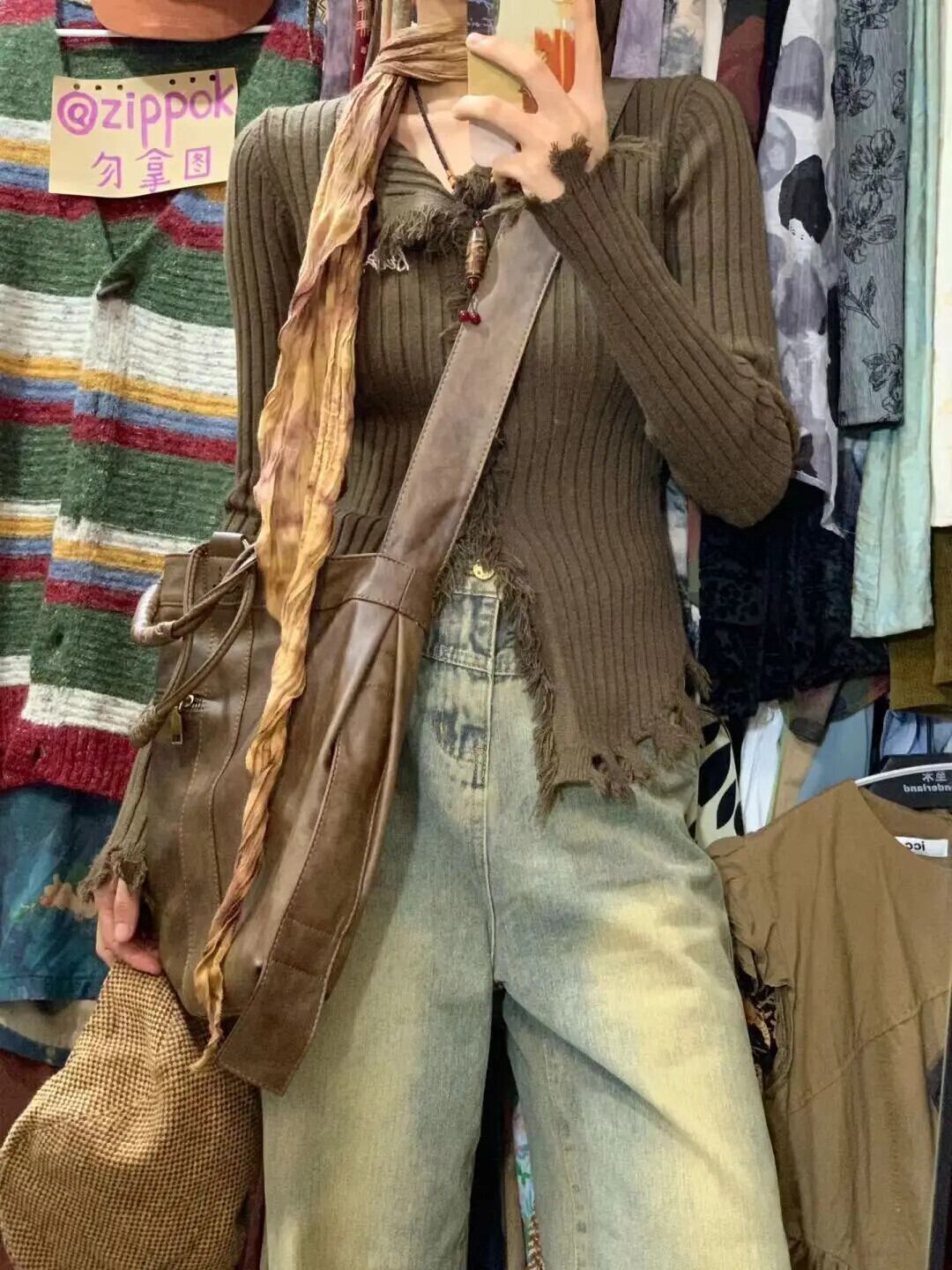 V ネック セーターテルス カーディガン 2024 セーター Y2k セーター デ ニット コート プル ブラック