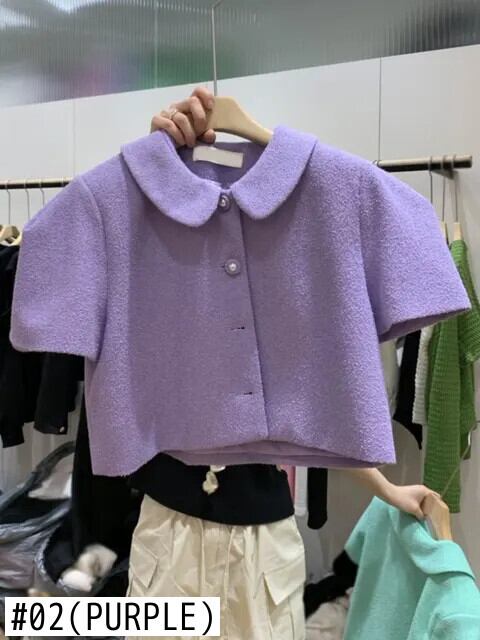 バブルスリーブラペルショートジャケットチャケータ春夏コート作物スーツ 2024 ウールトップス甘い 大人ガーリー スウィート キュート カジュアル スプリング 春物 サマー 夏物