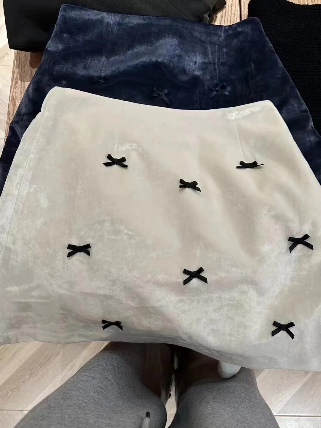 甘い黒ウエストリボンベルベットスカート原宿ペチコートファルダス 2024 ショートクラブストリート ブラック 大人ガーリー スウィート キュート カジュアル かわいい