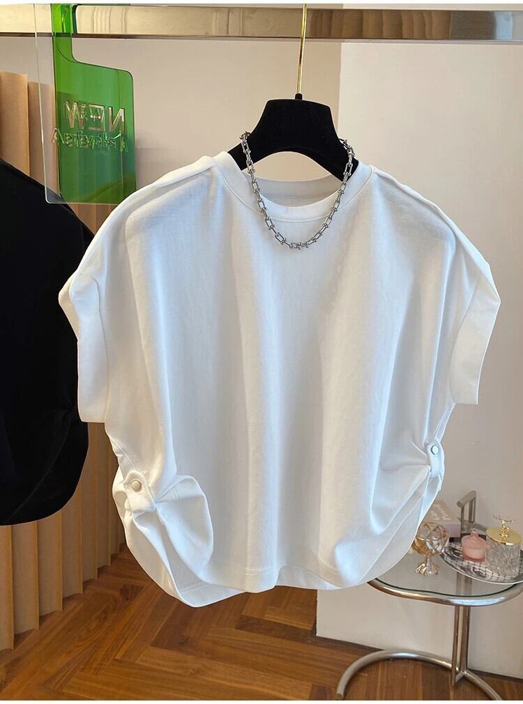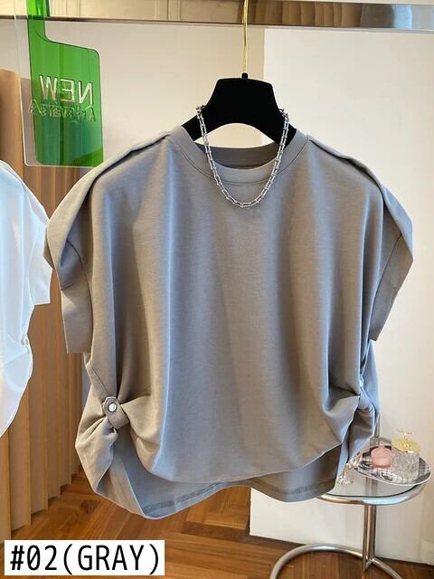 グランジ 2024 シャツ夏綿特大 Tシャツフライング袖 Tシャツショートショルダーブラックホワイト Kpop コットン サマー 夏物