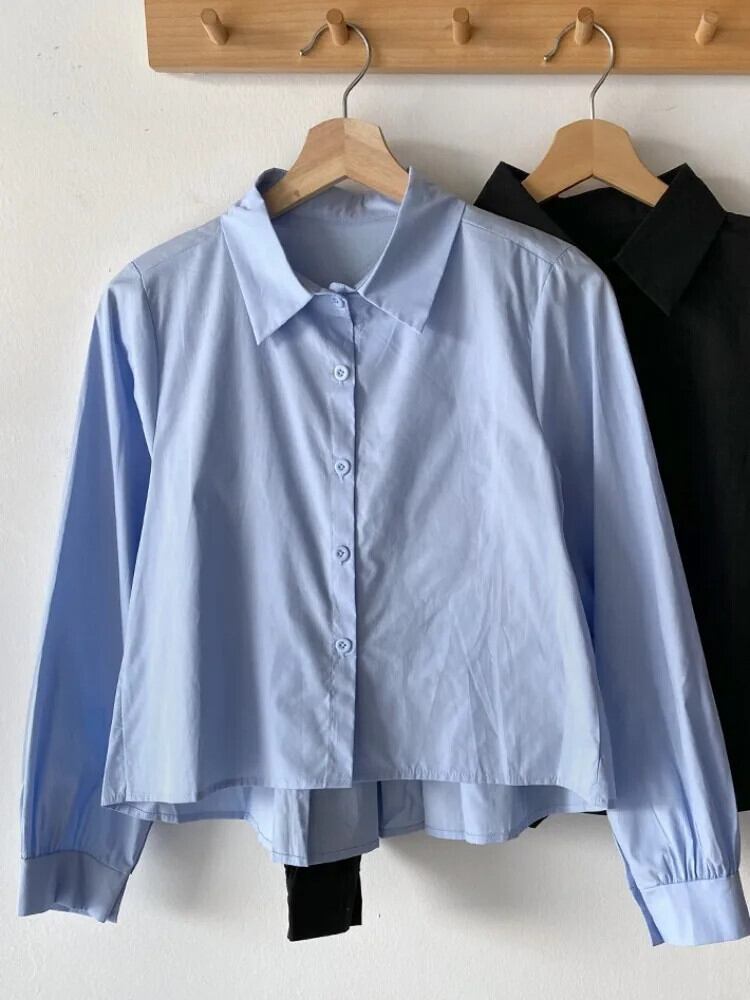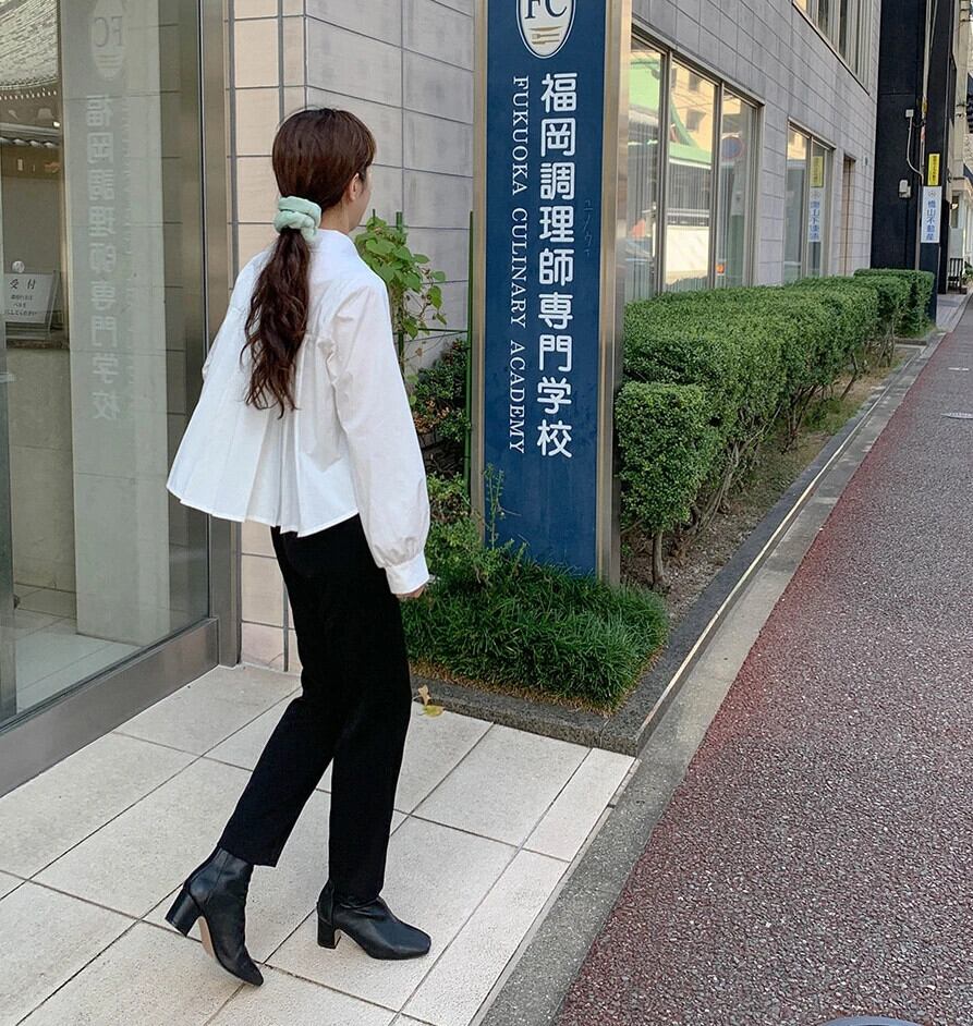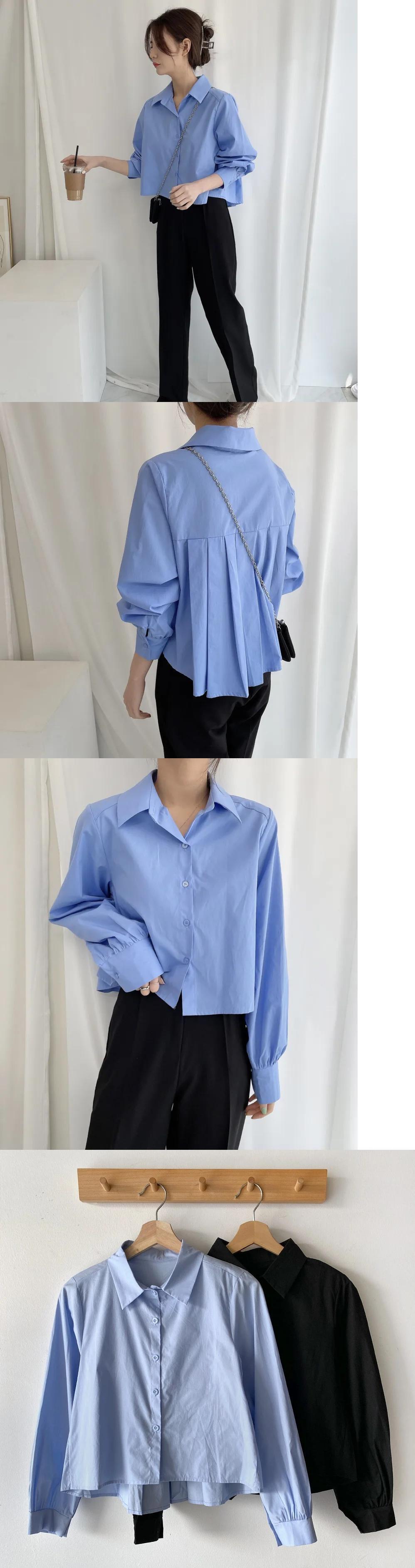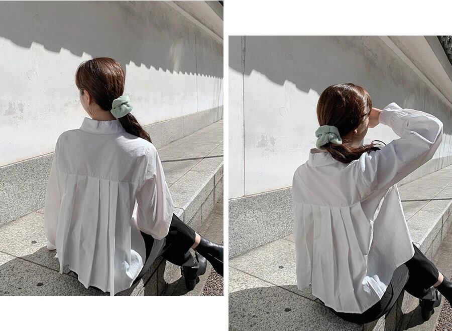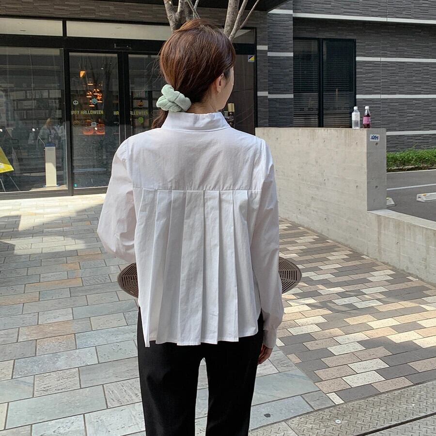 s es 春フレンチバックプリーツショートシャツルーズドールトップ白ブラウス2024 ホワイト スプリング 春物