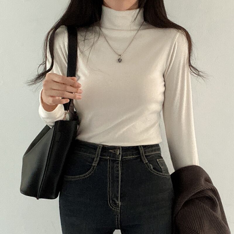 シャツ 2024 スリムソリッドカラー Y2k トップ弾性黒、白ハーフカラー Tシャツ Tシャツ Ropa 綿ニット ホワイト ブラック コットン エラスティック 伸縮