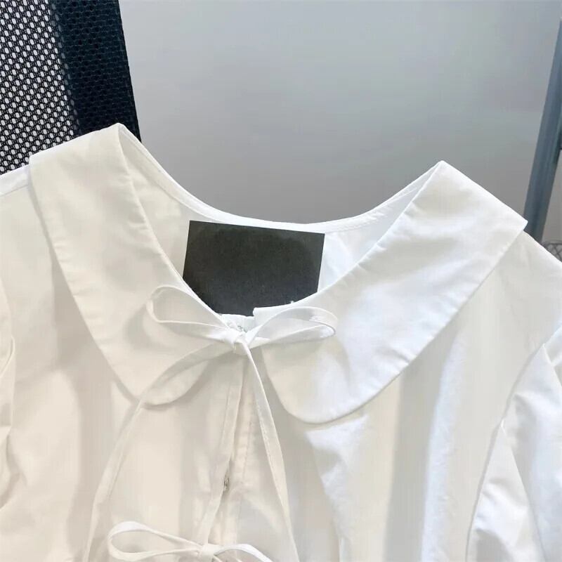 2024 甘いブラウス包帯ターンダウン襟パフスリーブ白シャツデモーダ夏かわいいトップス ホワイト 大人ガーリー スウィート キュート カジュアル サマー 夏物